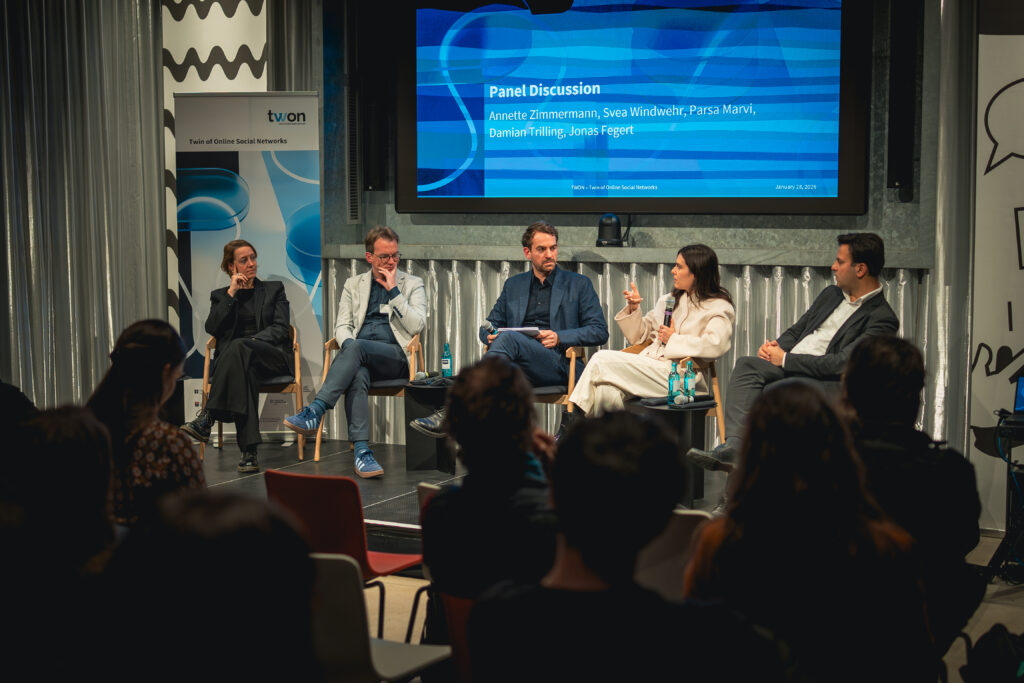 The event concluded with a panel discussion titled What’s next, featuring Annette Zimmermann, Parsa Marvi, Svea Windwehr, and Damian Trilling, moderated by Jonas Fegert. The discussion focused on concrete recommendations from research, policy, and implementation, particularly in relation to the Digital Services Act, and discussed how online social networks can be held accountable in times of increasing geopolitical tensions.